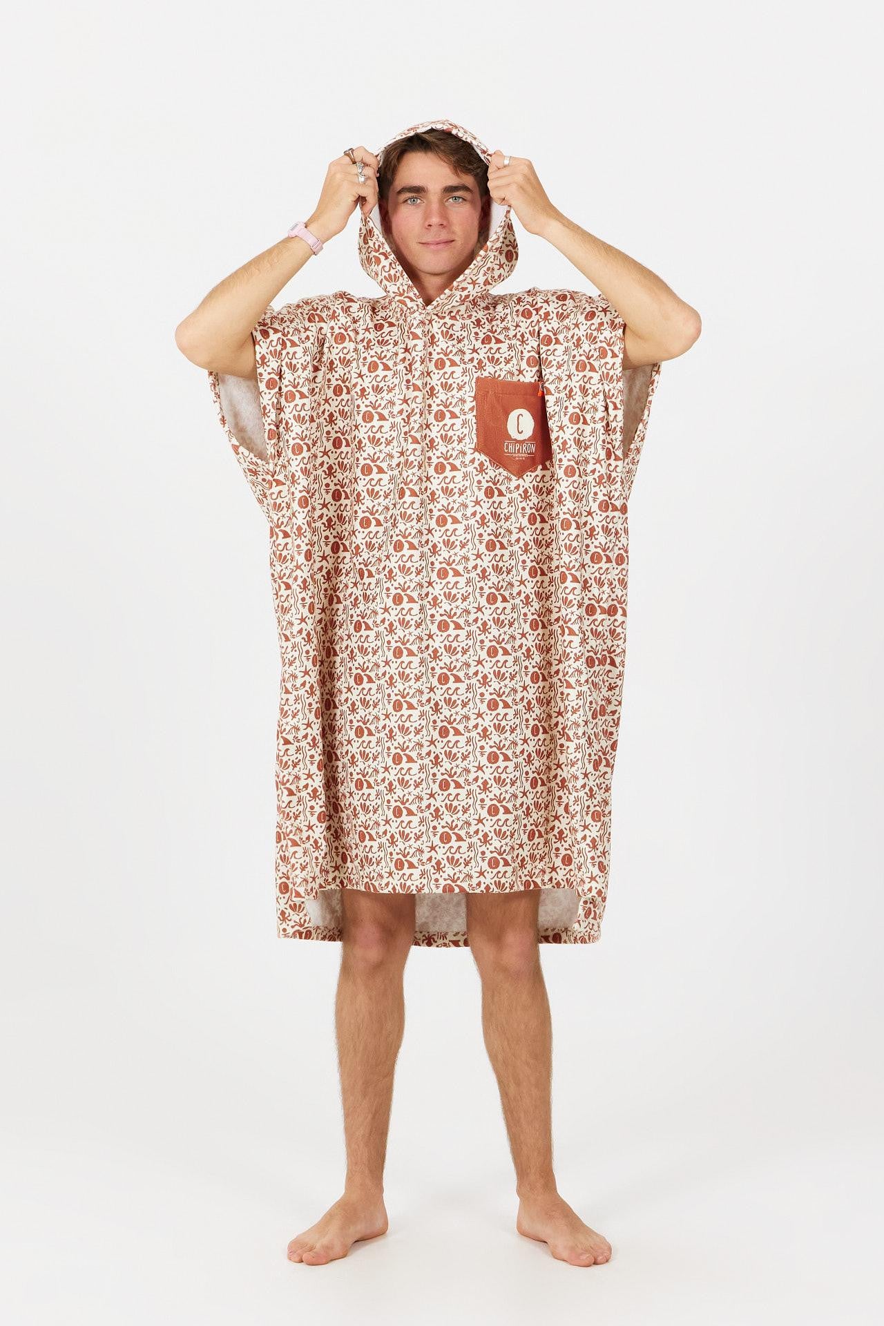 With this collaborative poncho, we reflect Chipiron’s friendly, family-oriented approach to surfing, his world, and his passion for the ocean. Made from soft, ultra-absorbent terry fabric, this poncho is perfect for after-surf moments, keeping you warm and dry after every session.