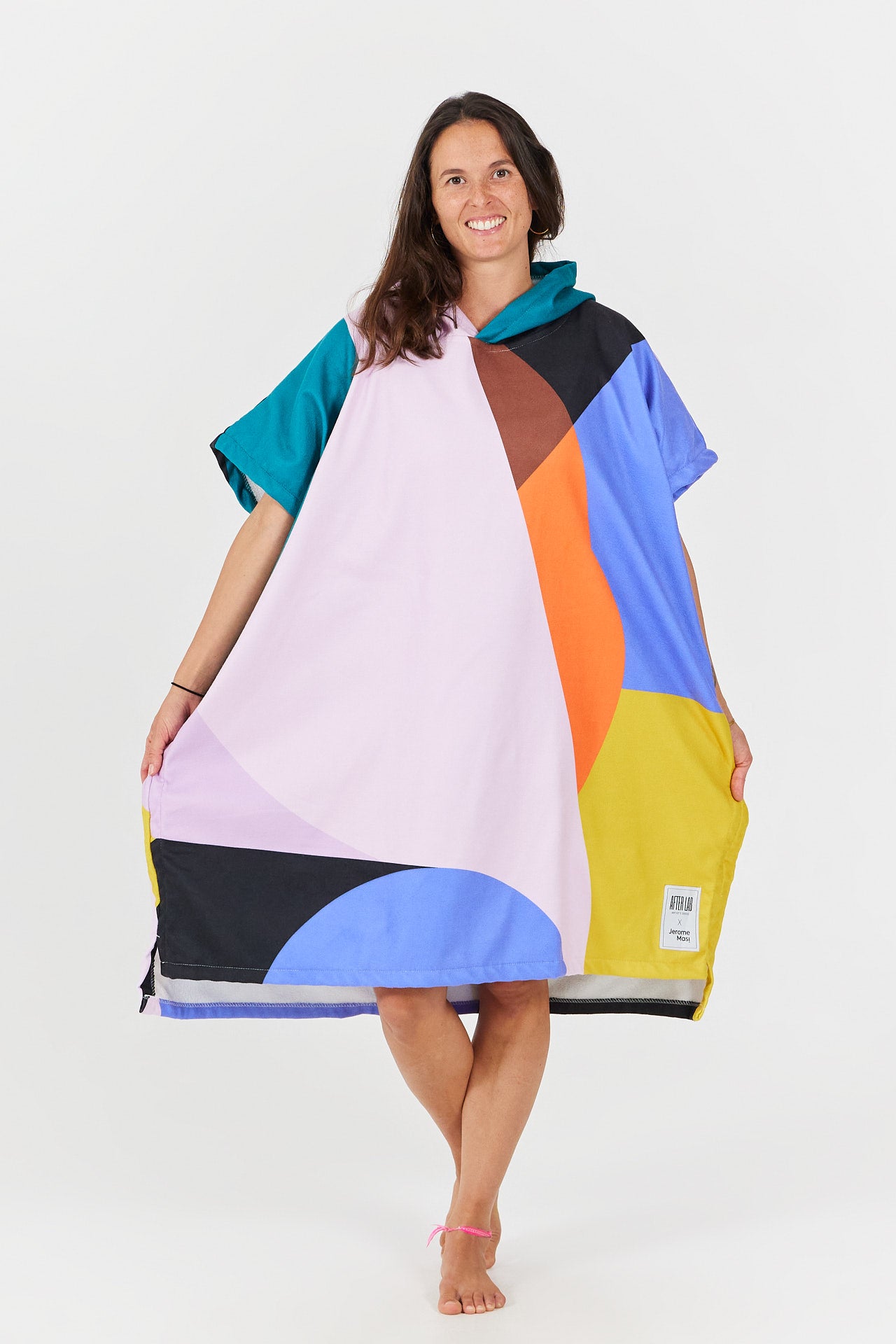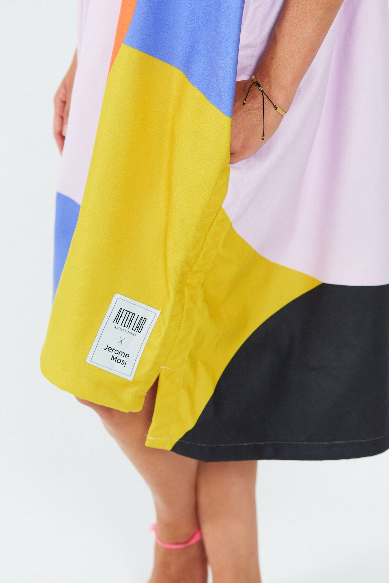 For his collaboration  Poncho, Jérôme explored abstract yet highly distinctive color blocking, bringing a true urban vibe to the beach poncho.
