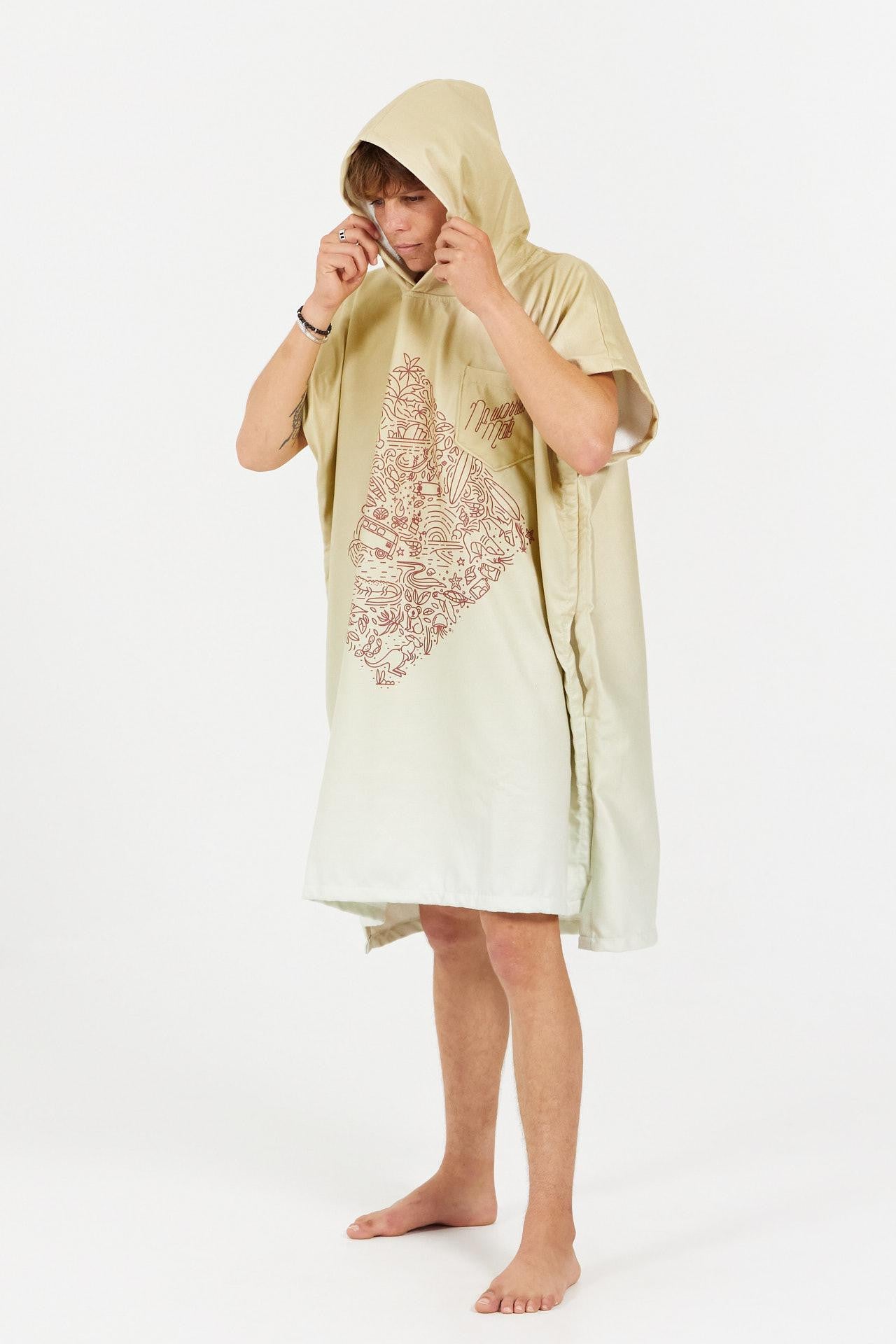 The Mindset Series celebrates free spirits and wandering souls. Inspired by legendary destinations where surfing and a laid-back way of life reign supreme, this collection of four ponchos highlights positive messages and life philosophies from different regions around the world. Hawaii, Costa Rica, the south-west of France, or even Australia… Iconic places where the ocean sets the pace, where days stretch out between waves and sunsets, and where every moment is lived with lightness. Each poncho in the series features illustrations inspired by travel, road trips and a bohemian lifestyle.