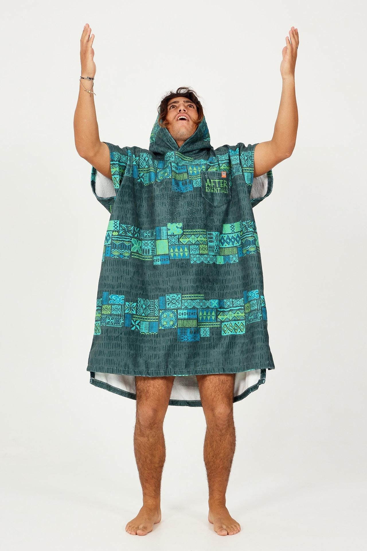 Our Native Series Tapa Poncho draws its inspiration from this Polynesian beach culture. Its patterns, printed on ultra-absorbent terry fabric, reinterpret Polynesian and Maori art in bright, vibrant colours. The tone-on-tone all-over details echo the ancestral technique of making tapa from beaten bark.