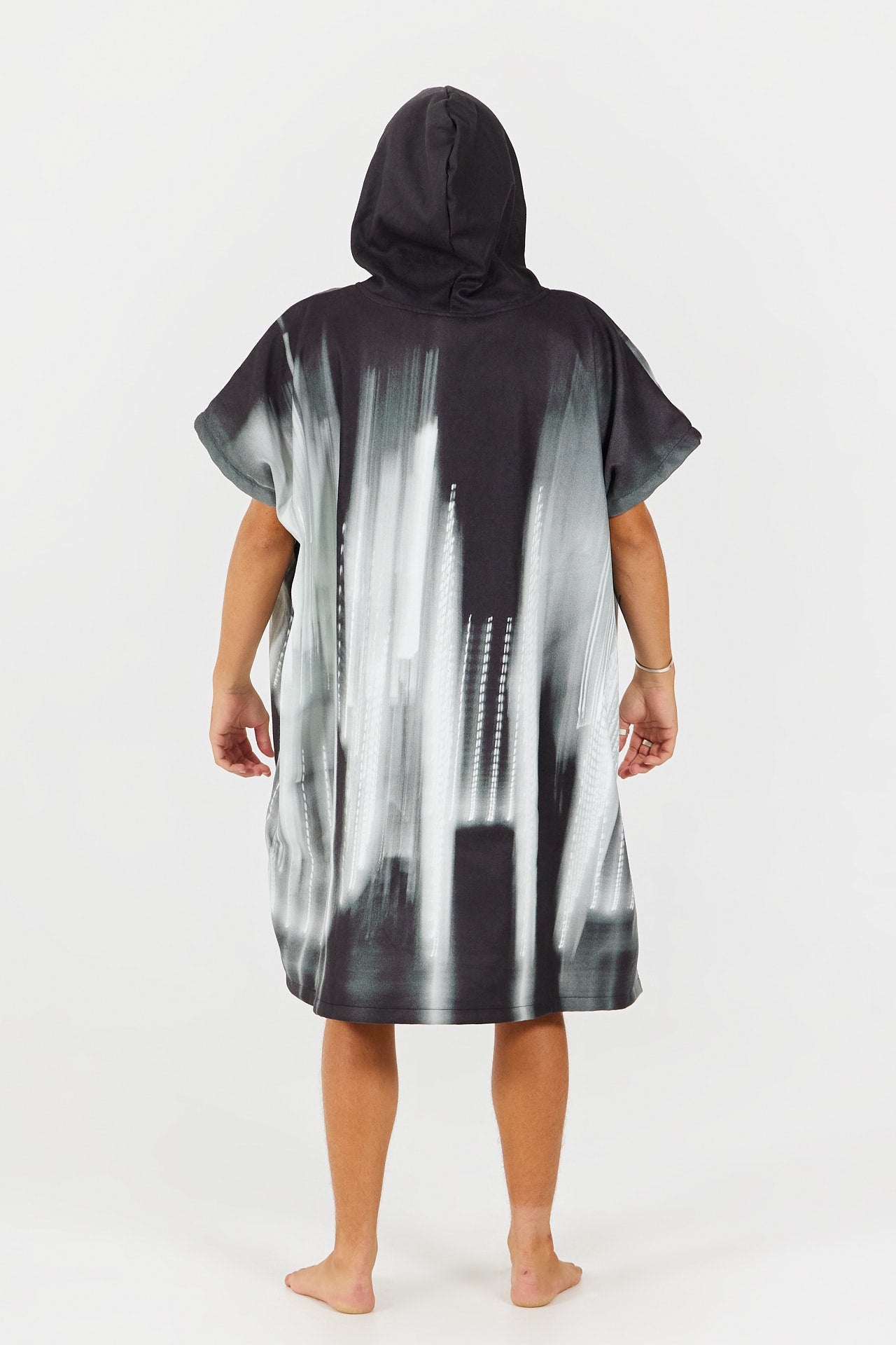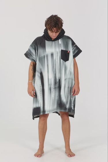 After a surf or a swim, the large hood and the 100% terry fabric in the inside will keep you warm and dry. While the polyester outside will ensure a perfect phot print finish.