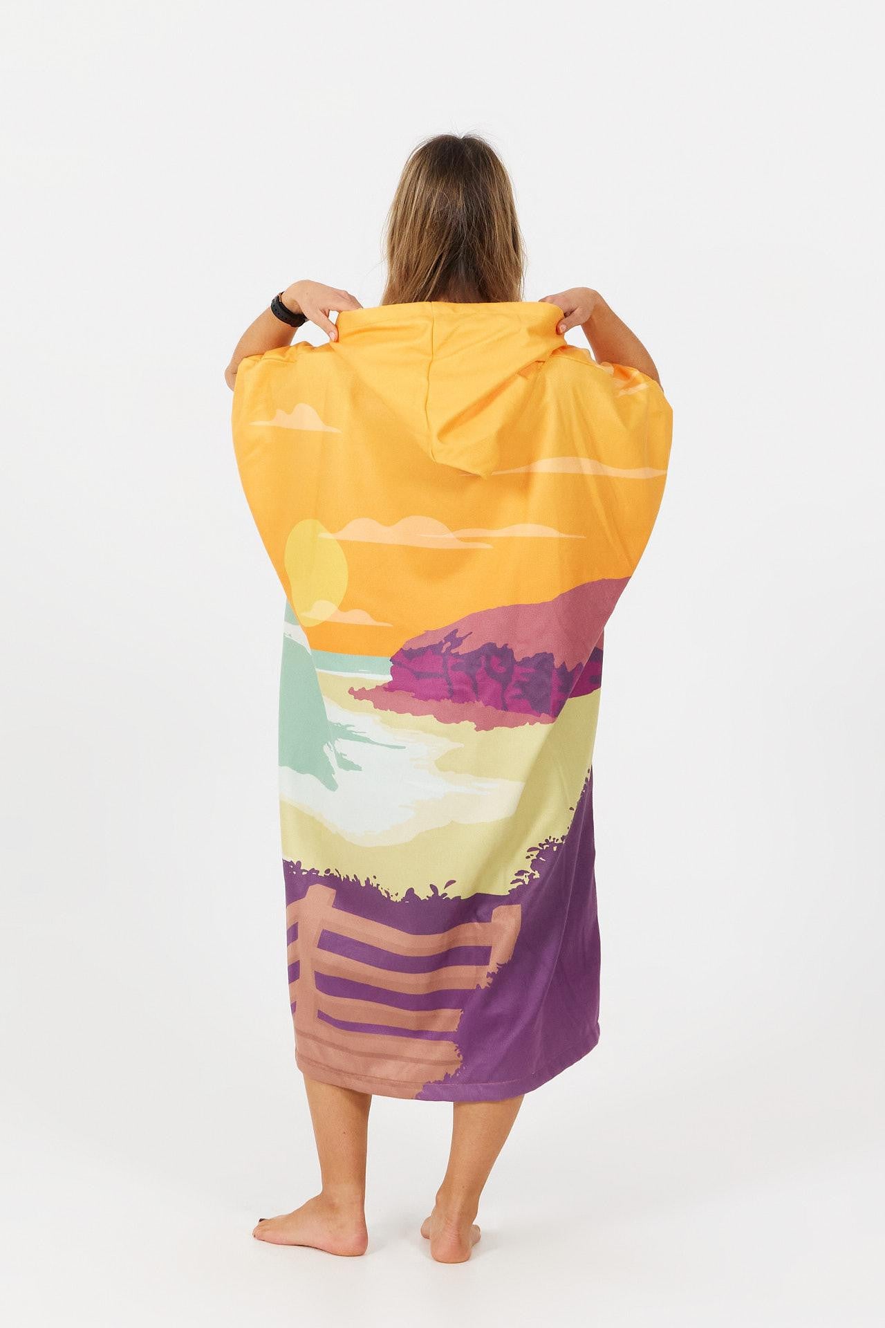 The Bell’s Beach Poncho from the Destination Series celebrates one of Australia’s most legendary surf spots. Nestled along the wild coastline of Victoria, this iconic place, known for its powerful and technical waves, is also a land rich in history and Aboriginal culture. For over 50 years, it has been an essential stop for any surfer in search of performance.