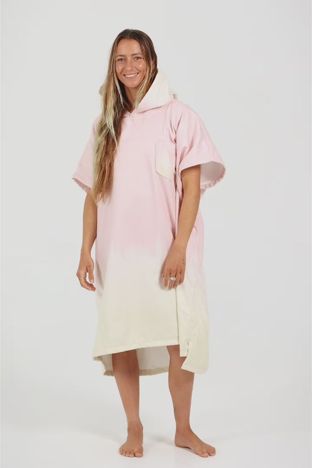 The Dusty Rose poncho from the Gradient Series embodies softness and femininity with its subtle gradient from pale pink to delicate beige. It evokes a summer feel, perfect for relaxing by the pool, at the beach or after a surf session. Its light, airy design wraps you in absolute comfort with an elegant and refined touch.