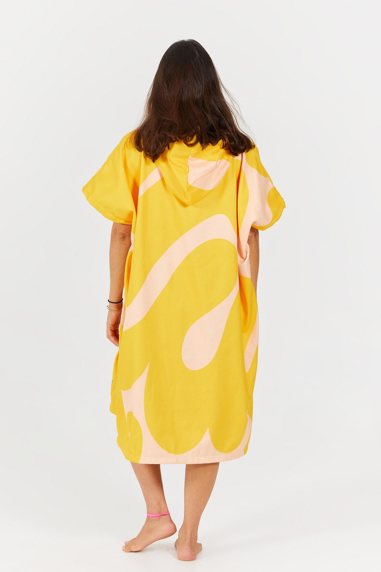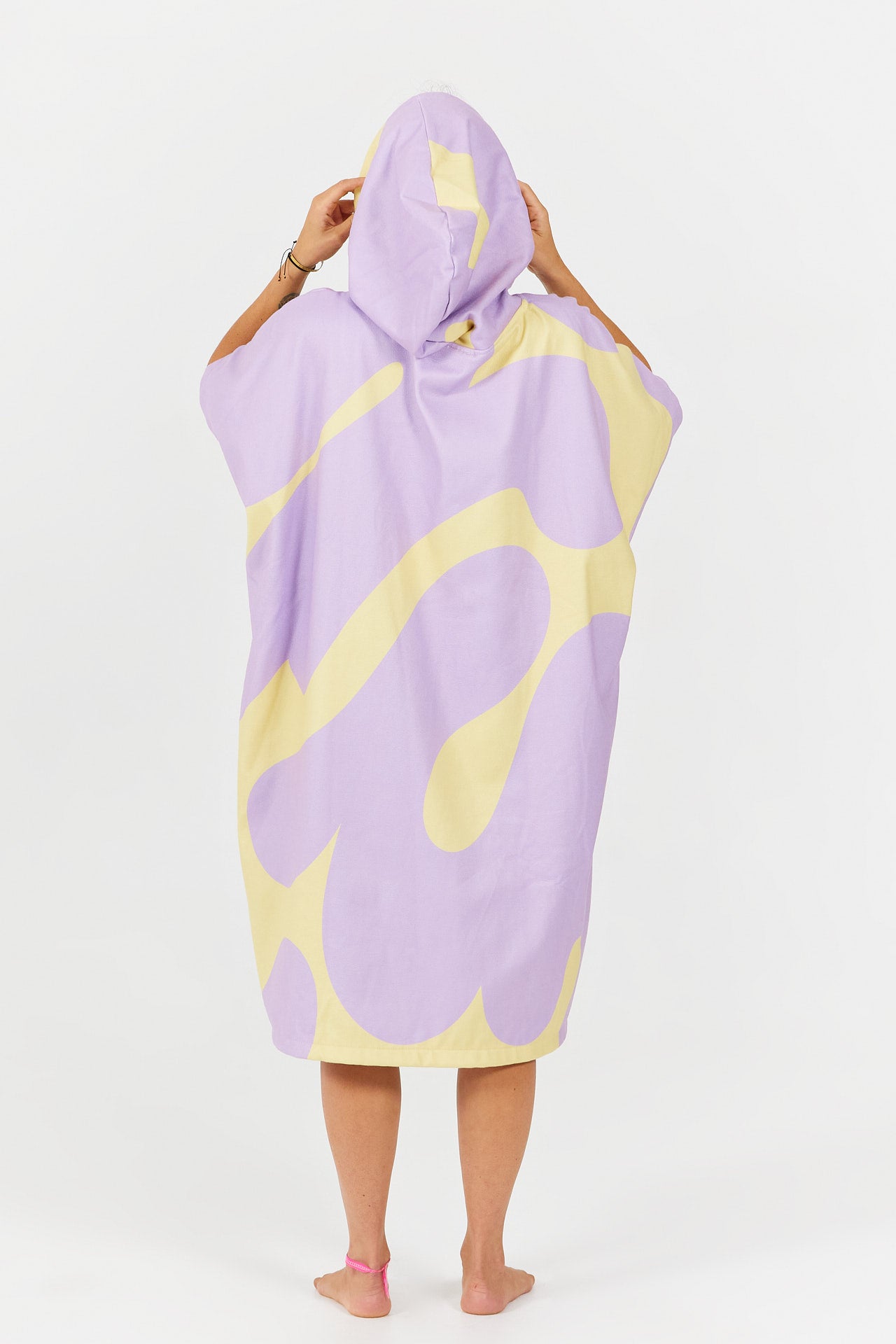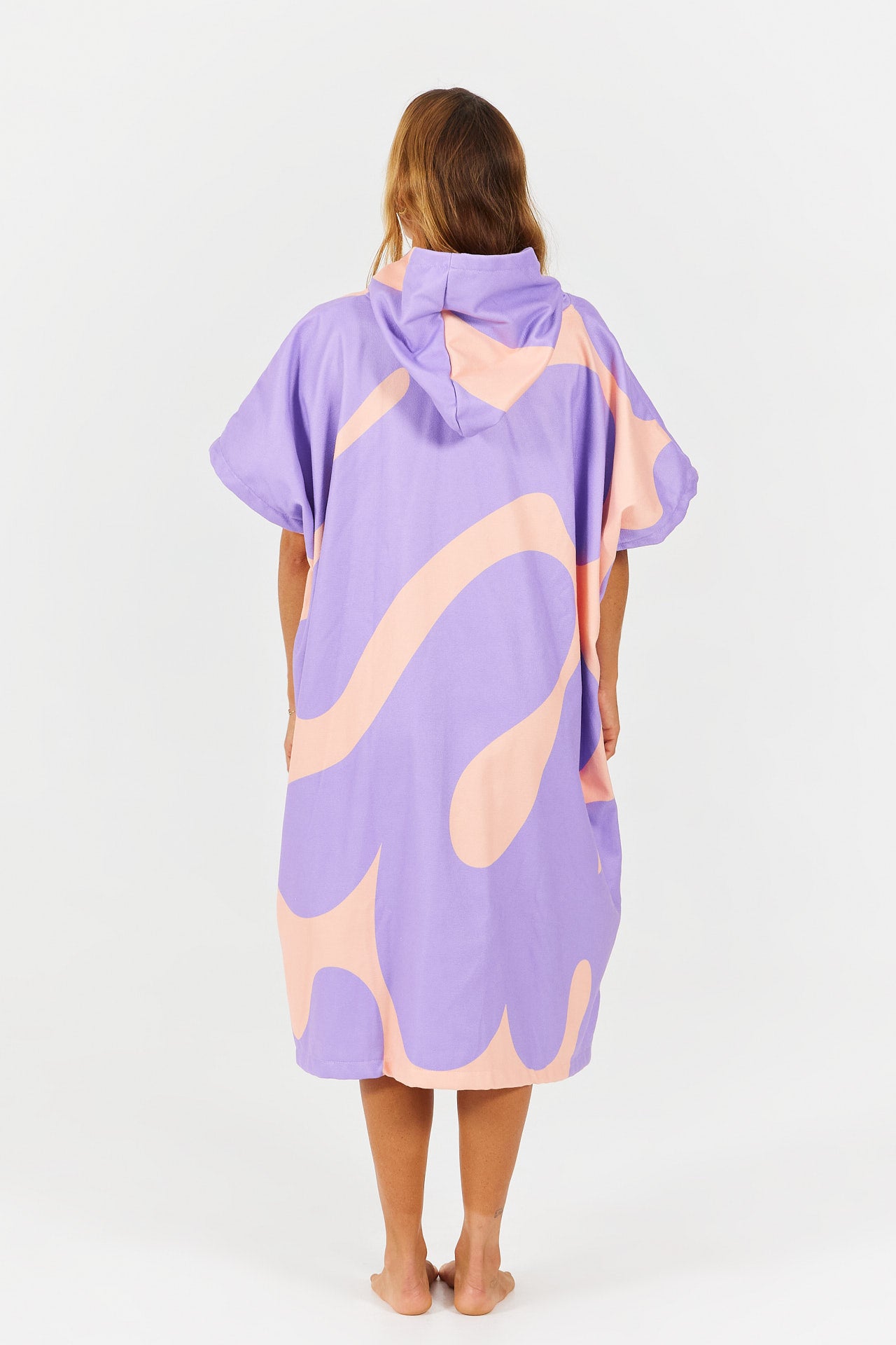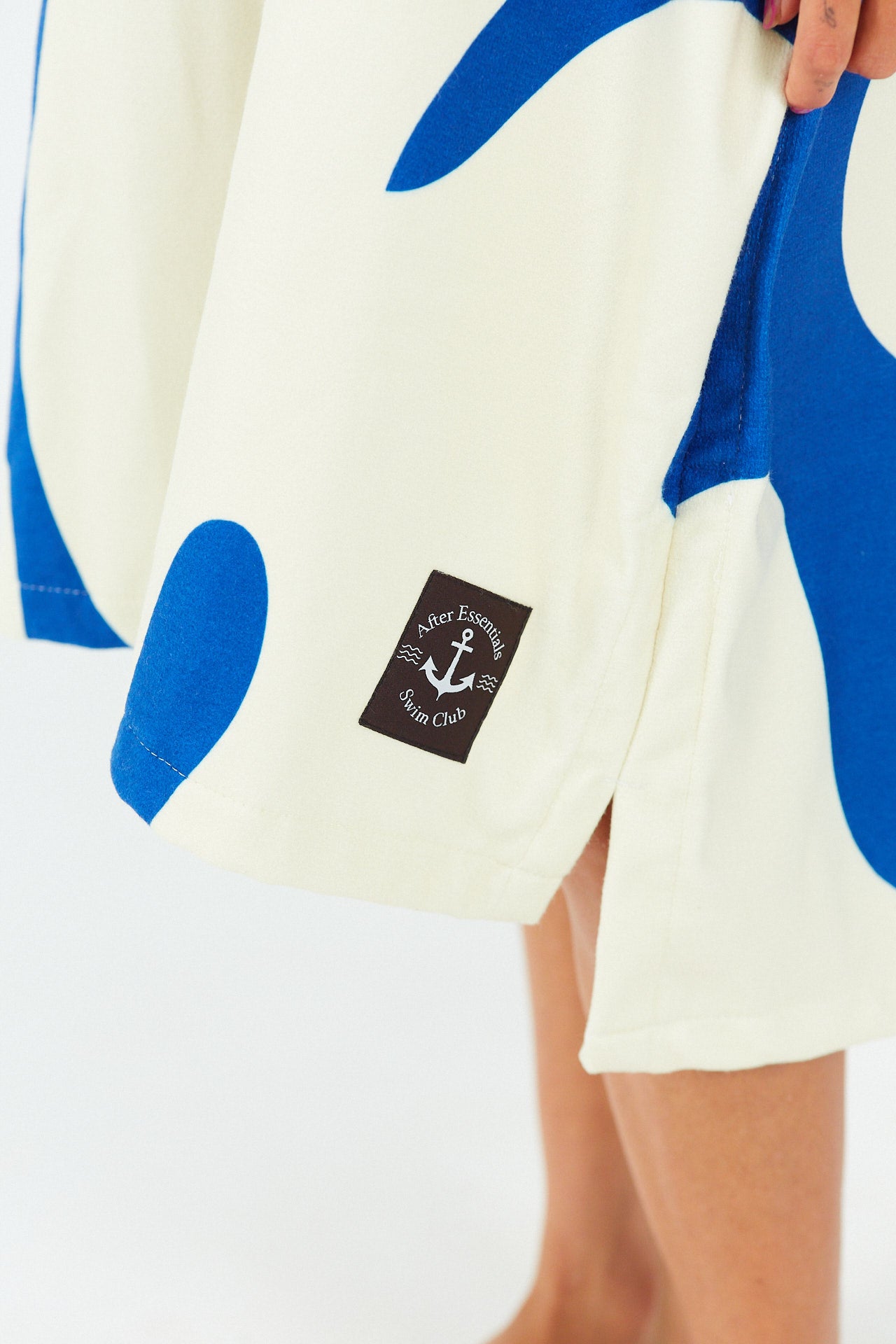 Inspired by the sport of diving, the Splash poncho features stylized splash patterns, evoking the movement of water and the refreshing feeling of sunny swims.
